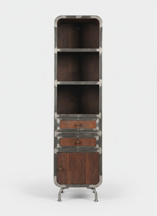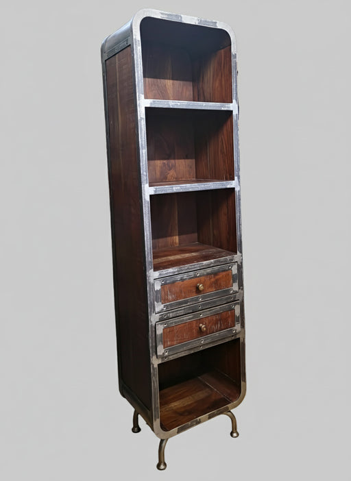 B: 50 H: 190 T: 35Original vintage Regal mit Stahlrahmen aus massivem Teakholz in Handarbeit von einem indischen Künstler (ca 1980) hergestelt . Diese Auftragsarbeit...
