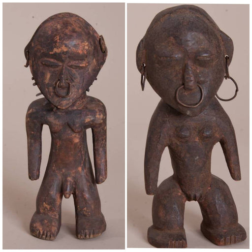 H: 34Figurenpaar der Bwaka aus Holz handgearbeitet. Dieses Figurenpaar trägt Nasen- und Ohrringe. Interessant ist die Kopfform, welche bei beiden vorne ...
