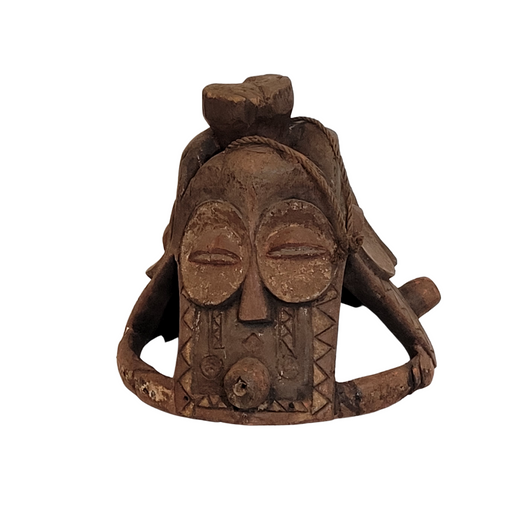H: 62Reliquie vom Stamm der Bakongo / DR Kongo, als Kopfschmuck tragbar, wohl zur Huldigung der Ahnen gedacht. Gelebter Kult, traditionell gefertigt.