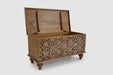 Diese schöne Truhe mit ihren Sternförmigen Ornamenten besticht durch eine ganz besondere Ausstrahlung . Praktisch und funktionell zugleich .