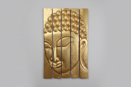 L: 250 B: 150 T: 5Dieses beeindruckende Buddha Panel aus Thailand ist ein Meisterwerk handwerklicher Kunst. Gefertigt aus massivem Material in fünf Teilen, verkörper...