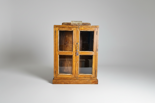 B: 45 H: 60 T: 28Alte handgefertigte Vitrine aus indischen Teakholz, bekannt für seine außergewöhnliche Haltbarkeit und charakteristische Maserung.Die natürl...
