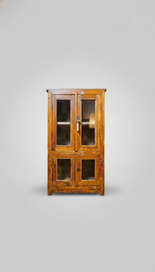 B: 53 H: 96 T: 25Alte handgefertigte Vitrine aus indischen Teakholz, bekannt für seine außergewöhnliche Haltbarkeit und charakteristische Maserung.Die natürlichen Ö...