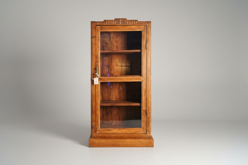 B: 46 H: 83 T: 27Alte handgefertigte Vitrine aus indischen Teakholz, bekannt für seine außergewöhnliche Haltbarkeit und charakteristische Maserung.Die natürl...